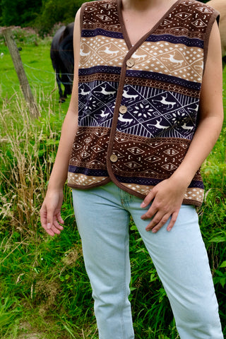 Vintage 90s Boho Norwegermuster Fleece Weste - XXL